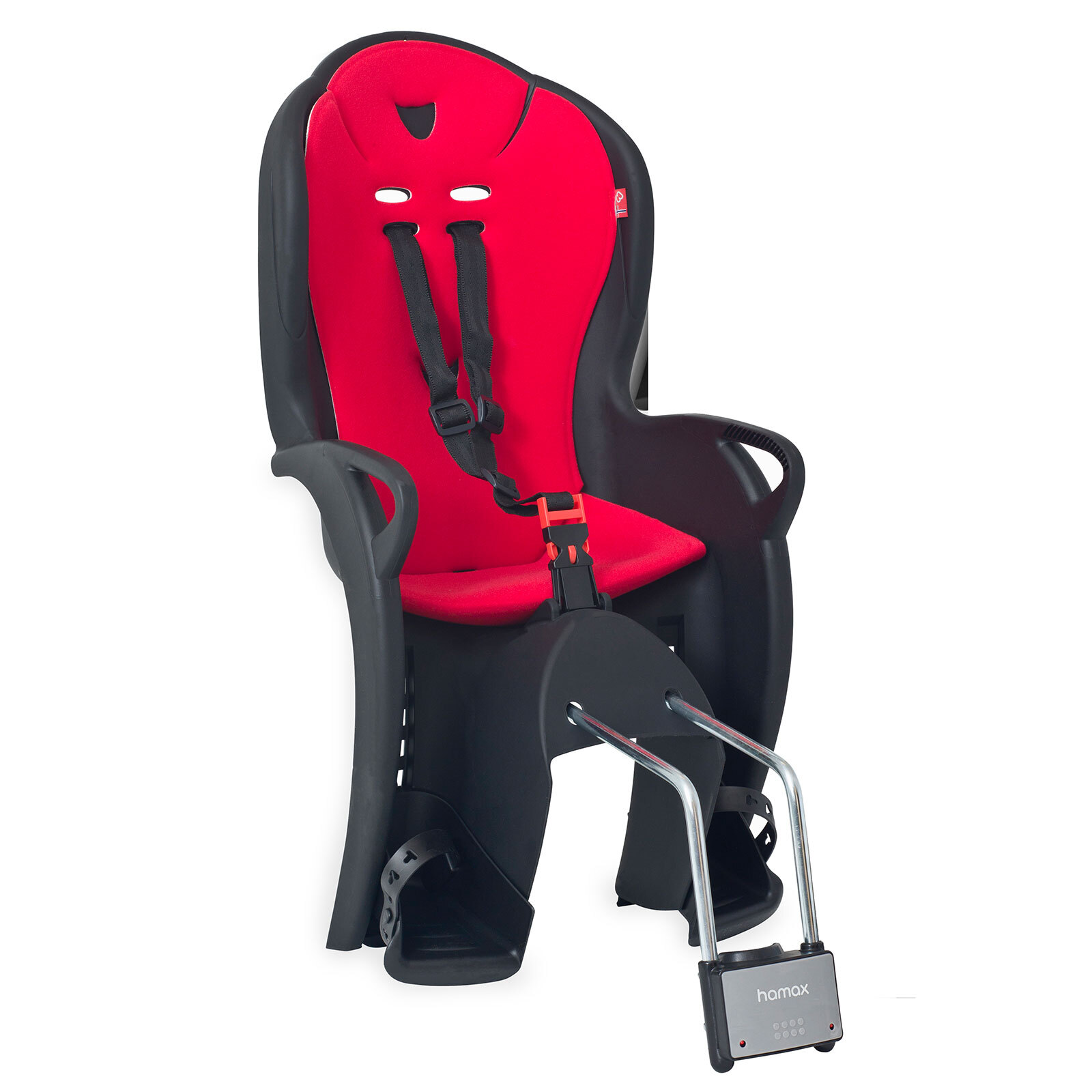 Fotelik do mocowania z tyłu roweru wyposażonego w bagażnik lub nie. Posiada regulowane podpórki na stopy, osłaniające z boku podłokietniki i wyprofilowane oparcie. Waga przewożonego dziecka nie może przekraczać 22kg. Fotelik z nową standaryzacją EN14344-2022