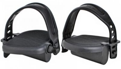 Pedały plastikowe z antypoślizgową powierzchnią. Korpus wykonany z tworzywa sztucznego. Oś wykonana ze stali Cr-Mo. Łożyska kulkowe. Wymiary: 95 x 80 x 22 mm. Waga: 262 g. Kolor: czarno-szare.