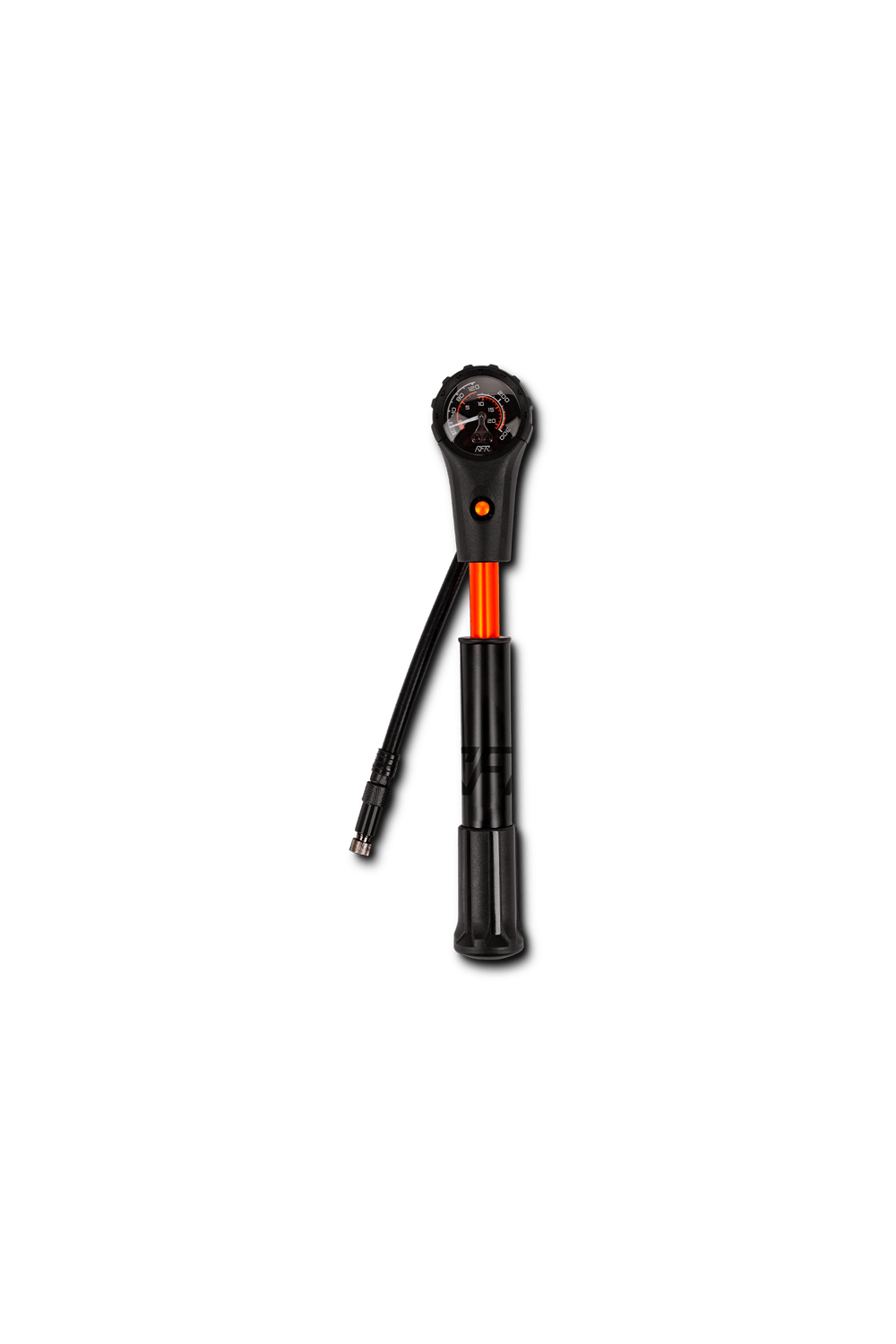 Pod presją! Utrzymuj cały swój zestaw w gotowości na szlaku dzięki Shock&Tire firmy RFR ? idealnemu do rowerów górskich z pełnym zawieszeniem i hardtail. Opatentowana głowica Schrader pompki do amortyzatorów z adapterem Presta i długi elastyczny wąż gwarantują maksymalną elastyczność. Wybierz między wysokim ciśnieniem a dużą objętością w zależności od tego, co jest podłączone do drugiego końca węża! Dokładne regulacje są dziecinnie proste dzięki zaworowi odpowietrzającemu i manometrowi!