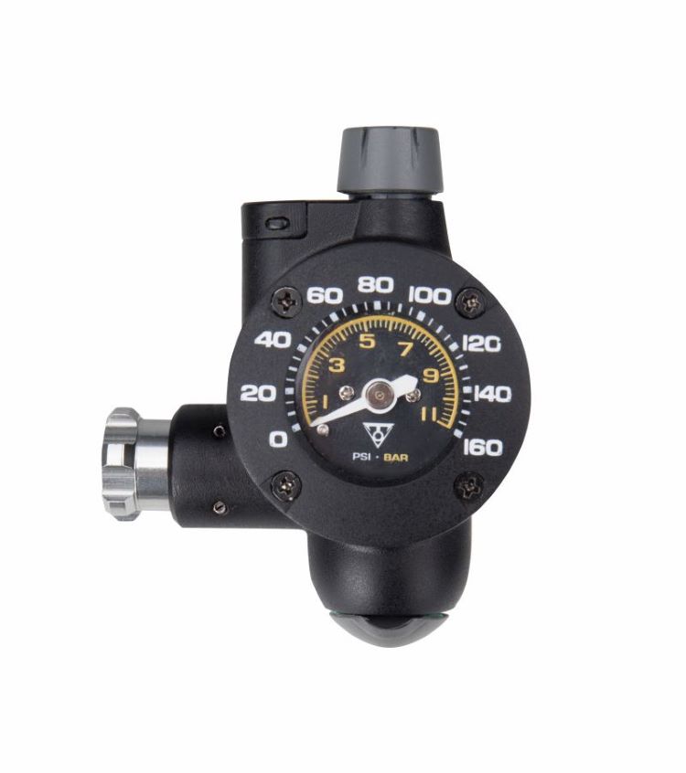 Pierwszy na świecie inflator CO2 z manometrem zapewnia pompowanie oraz pomiar ciśnienia w oponach. Kątowa głowica pasuje do zaworów Presta i Schrader, a specjalna funkcja pozwala użytkownikowi regulować przepływ powietrza podczas napełniania opony. Podwójna konstrukcja pozwala na przechowywanie naboju.