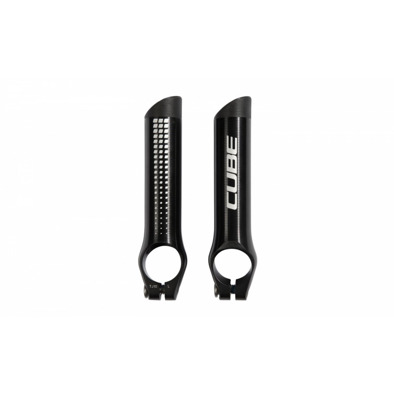 Te superlekkie, obrabiane CNC aluminiowe końcówki kierownicy zawierają rowek na kciuk w plastikowej nasadce, co zapewnia pewny chwyt. Są anodowane, a nadruk laserowy zawiera logo CUBE po dwóch stronach. System blokady gwarantuje trzymanie kierownicy bez poślizgu.