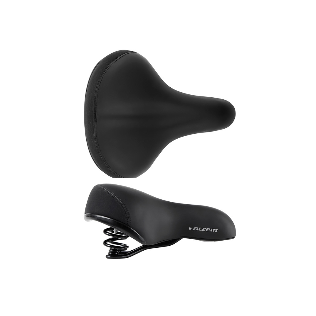 Wygodne siodełko do jazdy miejskiej i turystycznej. Wypełnienie z komfortowego i świetnie absorbującego drgania żelu dla zapewnienia maksymalnego komfortu podczas jazdy. Pokrycie wykonano ze skóry syntetycznej, z tyłu aksamitna wstawka. Dodatkowa amortyzacja. Siodełko osadzone jest na stalowych prętach.