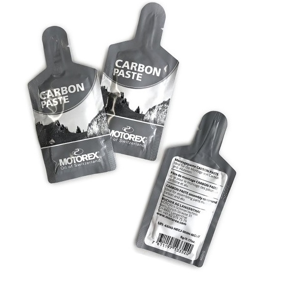 Uwaga: cze?s?ci karbonowe sa? szczego?lnie wraz?liwe na uszkodzenia spowodowane przez zacisk. MOTOREX CARBON PASTE powoduje tarcie mie?dzy dwiema powierzchniami i znacznie zmniejsza siłe? zacisku.