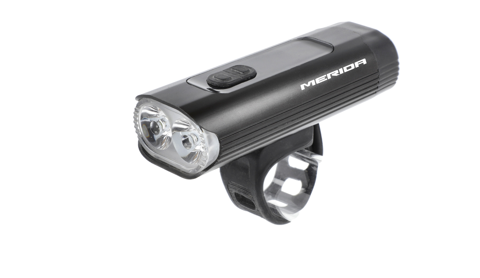 | KRÓTKI OPIS | Super mocna przednia lampka rowerowa ładowana przez USB. Poprawi Twoją widoczność na drodze i zwiększy bezpieczeństwo. 2 diody LED dają światło o strumieniu 1000 lm, akumulatory lampki mają pojemność 4800 mAh. Lampka Merida Pro 1000 może świecić 80 h w trybie stałym i 100 h w zmiennym. |