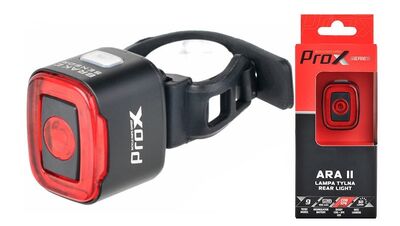 ? lampa tylna, ładowalna USB, moc: 80 Lm ? super jasna dioda COB LED, kąt świecenia 180 st. ? 6 trybów pracy: Stałe: 100% 2h, 50% 4h, na przemian 50/25% 4h, Migające: FL1 6h, FL2 8h, FL3 1:20h, FL4 1:40h, FL5 8h ? akumulator: ładowalny, Litowo-Polimerowy o pojemności: 500 mAh ? średni czas ładowania 2h (1A) za pomocą gniazda micro USB ? wymiary / waga lampy+uchwyt: 44 × 27 × 30 mm / 49 g ? materiał obudowy: aluminium, tworzywo ABS / PP ? wodoszczelności: klasy IPX4 ? funkcja Memory Mode: lampa zapamiętuje ostatnio wybrany tryb świecenia ? w komplecie: gumowy pierścień z regulowanym uchwytem szybkiego montażu, uchwyt na pasek, kabel do ładowania Micro USB ? pakowanie: kartonik ProX (waga 89 g)