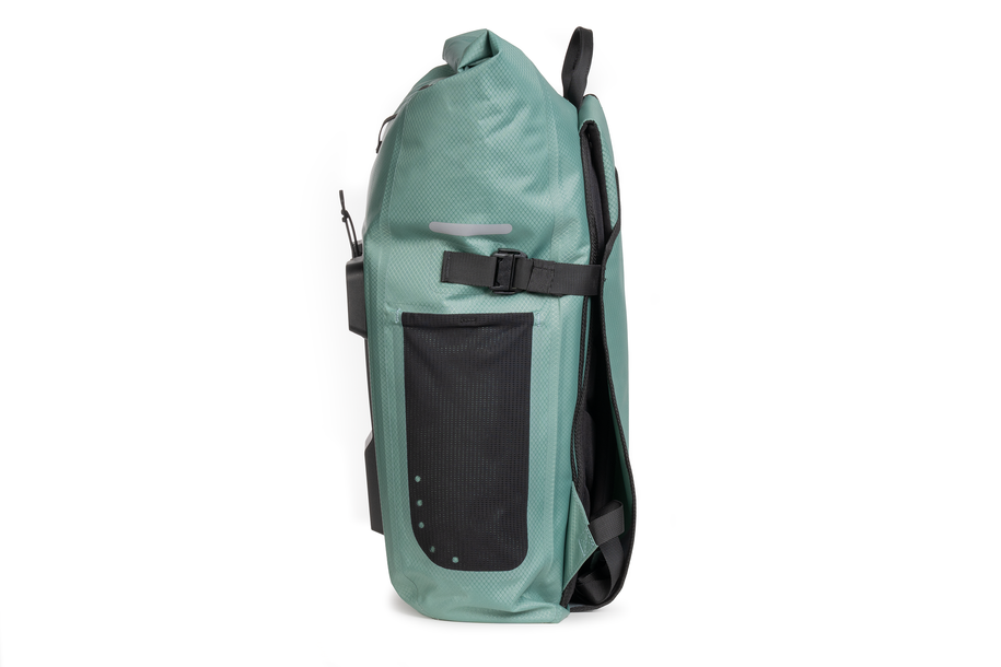 Dzięki przemyślanej konstrukcji, która umożliwia łączenie jej z sakwami i plecakiem, ACID Flip Pro 25 to rozwiązanie typu one-bag dla osób dojeżdżających do pracy i każdego, kto musi przewozić swoje rzeczy na rowerze. Wykonana z wytrzymałego materiału TPU i o pojemności 25 litrów, dwustronna osłona może być szybko i łatwo przewrócona z jednej strony na drugą, w zależności od tego, czy używany jest system mocowania sakw, czy system nośny NF Ergonomics. System mocowania CILink jest kompatybilny z bagażnikami ACID SIC 2.0 i podobnymi, zapewniając szybkie, łatwe i bezpieczne mocowanie i odpinanie. Wewnątrz znajduje się również przegroda na laptopa 15 cali, boczna kieszeń z siatki, paski kompresyjne oraz boczny zamek błyskawiczny do komory głównej.