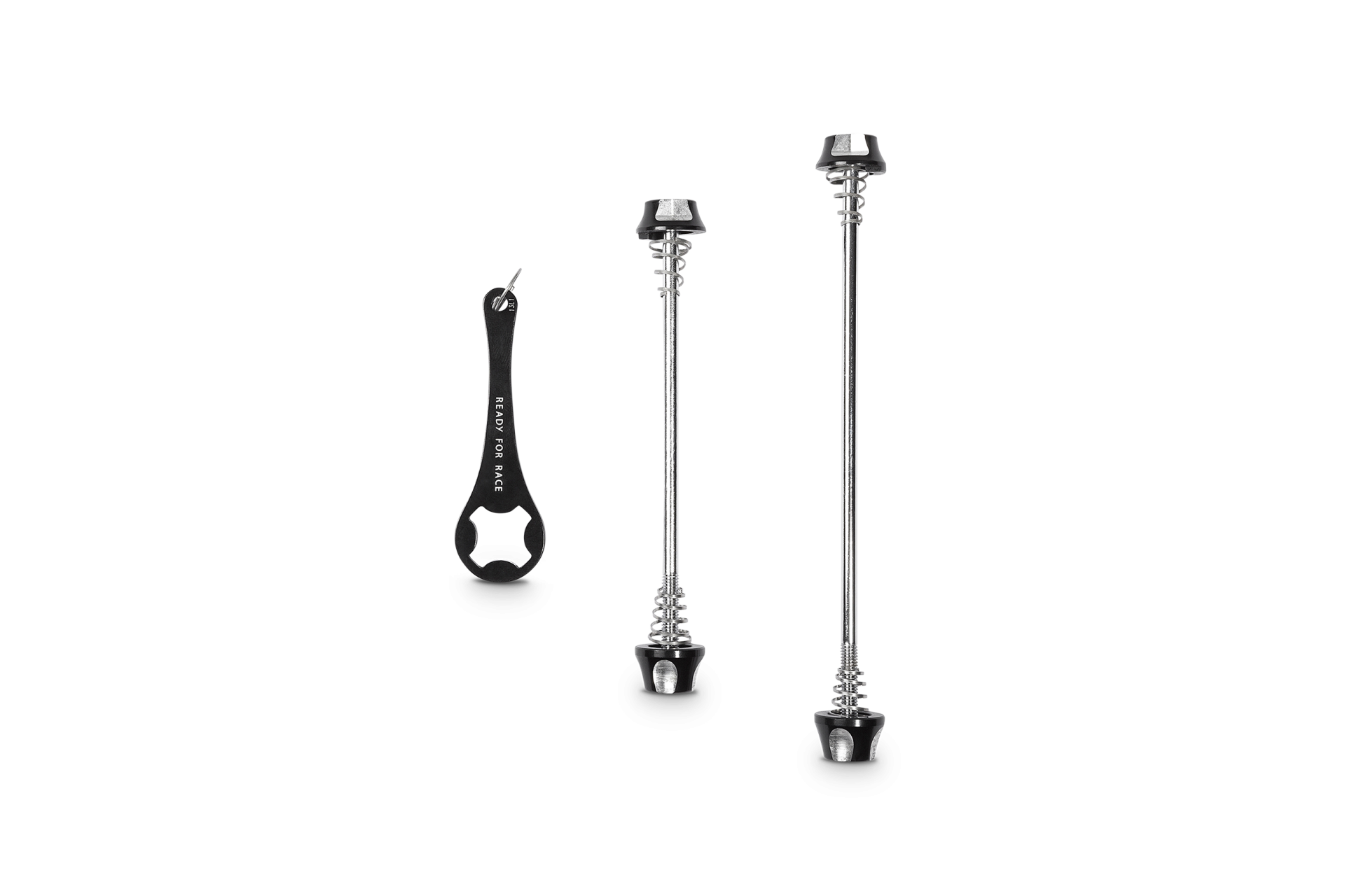 Oś CrMo, zabezpieczenie antykradzieżowe, bardzo lekka (70g), łatwa w montażu. Wymiary montażowe dla koła tylnego to 165/170 mm, dla koła przedniego 100/110 mm.